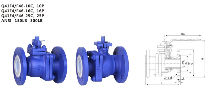 Q941F46电动衬氟球阀是由电动执行机构和O型衬氟球阀组成。阀体内腔及球芯均采用高压注塑工艺衬有耐腐蚀、耐老化的聚全氟乙炳烯,故具有可靠的耐腐蚀性和密封性。