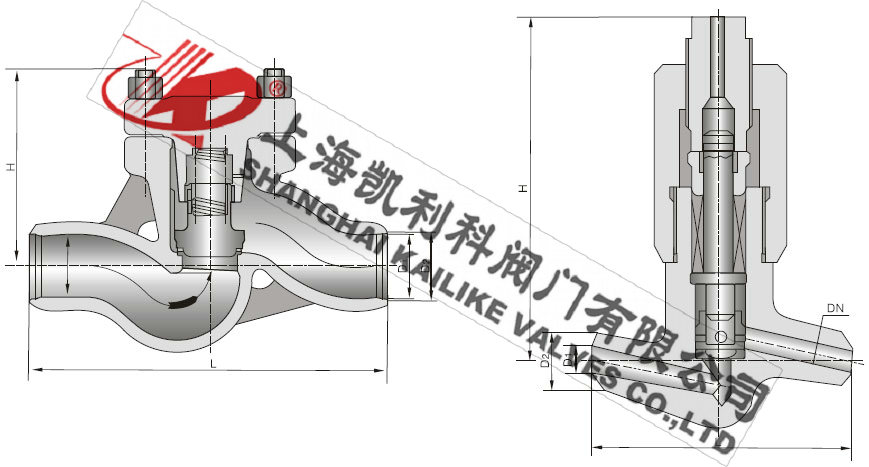 H61Y、H61H高压升降式止回阀支管两端为焊结结构,焊结坡口可按标准或用户要求制作,适用于火电厂、石油化工、冶金等高温高压的水、蒸气、油品、过热蒸汽的管道上作防止介质回流的装置。