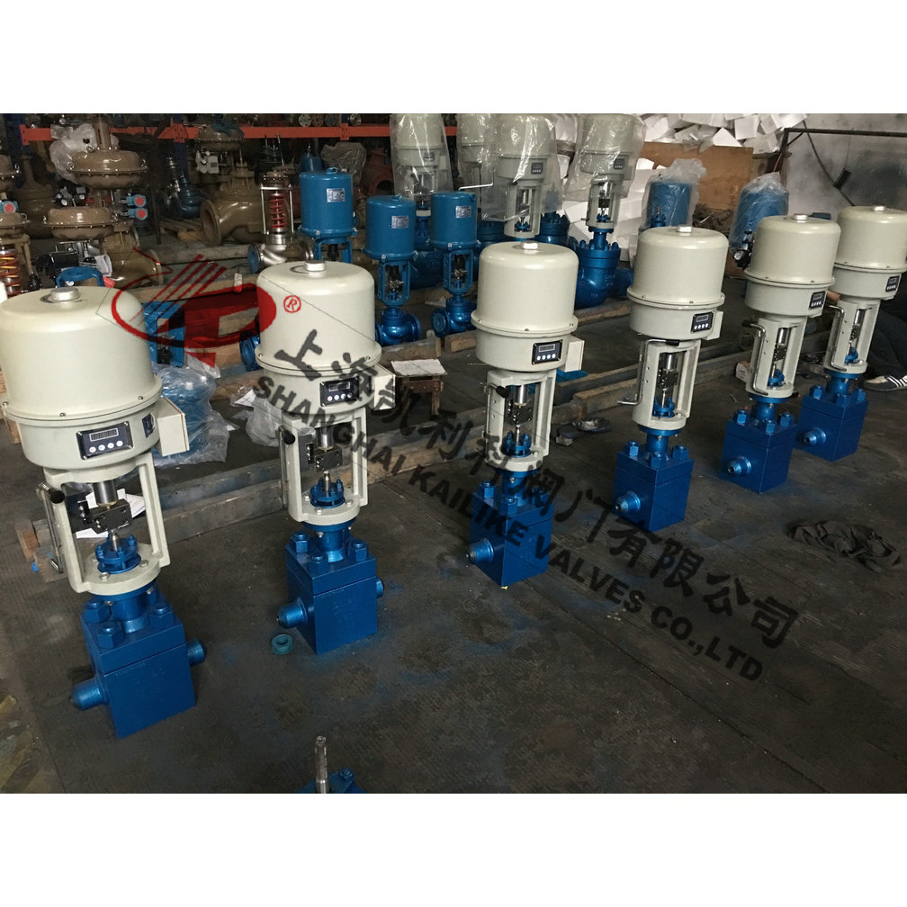 ZAYD电动高压调节阀是由PSL系列或者3810L系列直行程电动执行机构和高压调节阀体组成。电动高压笼式调节阀是针对调节阀在高压或高压差、有严重汽蚀、冲蚀的严酷工况条件下寿命短、阀杆易断裂、衬套易脱落严重问题研制开发的产品。电动高压调节阀采用笼式节流形式来分摊压差,减少了气蚀、冲蚀、挠流破坏,大大提高了调节阀的使用寿命,特别是用在尿素系统中比普通高压阀寿命提高2-3倍。电动执行机构为一体化结构,内有伺服放大器,输入控制信号(4~20mADC或1~5VDC)及电源即可控制阀门开度,达到对压力、流量、液位、温度等工参数的调节。阀体为直通式,阀芯为单导向结构,阀体流路简单,阻力小,电动高压调节阀特别适用于高粘度,含有悬浮物和颗粒状介质流体的调节,可避免结焦、粘结、堵塞。电动高压调节阀整体具有动作灵敏、连线简单、流量大、体积小、调节精度高等特点。