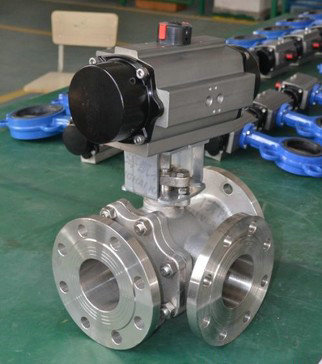 Q644F/Q645F气动三通球阀是一种三通道的回转型球阀, 用于介质分流、合流及流向切换,任何一个管道都可以作为入口或出口。气动三通球阀分有气动三通L型球阀和气动三通T型球阀两种,可以满足不同的生产工艺要求。气动三通L型球阀是对三条管道中的两条管道进行切断,气动三通T型球阀实现把三条连通管道进行合流与分流。气动三通调节球阀与电气阀门定位器配套,输入4~20mADC信号及0.4~0.7MPa气源即可控制运转,实现对压力、流量、温度、液位等参数的调节。气动三通换向球阀配行程限位开关、电磁阀、减压阀及0.4-0.7MPa气源可实现开关操作,并送出二对无源触点信号指示阀门的开关。气动三通球阀广泛应用于化工,石油,轻纺,电力,食品制药,制冷,航空,航天,造纸等工业领域。