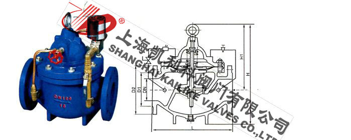 700X水泵控制阀当水泵工作阀门向下游供水时,电磁导阀全开,针阀调到适当开度,上游水经过针阀,导阀,单向阀进入主阀控制室,经电磁导阀流出,此时主阀控制室压力保持主阀处于合适开度,保持下游正常供水。